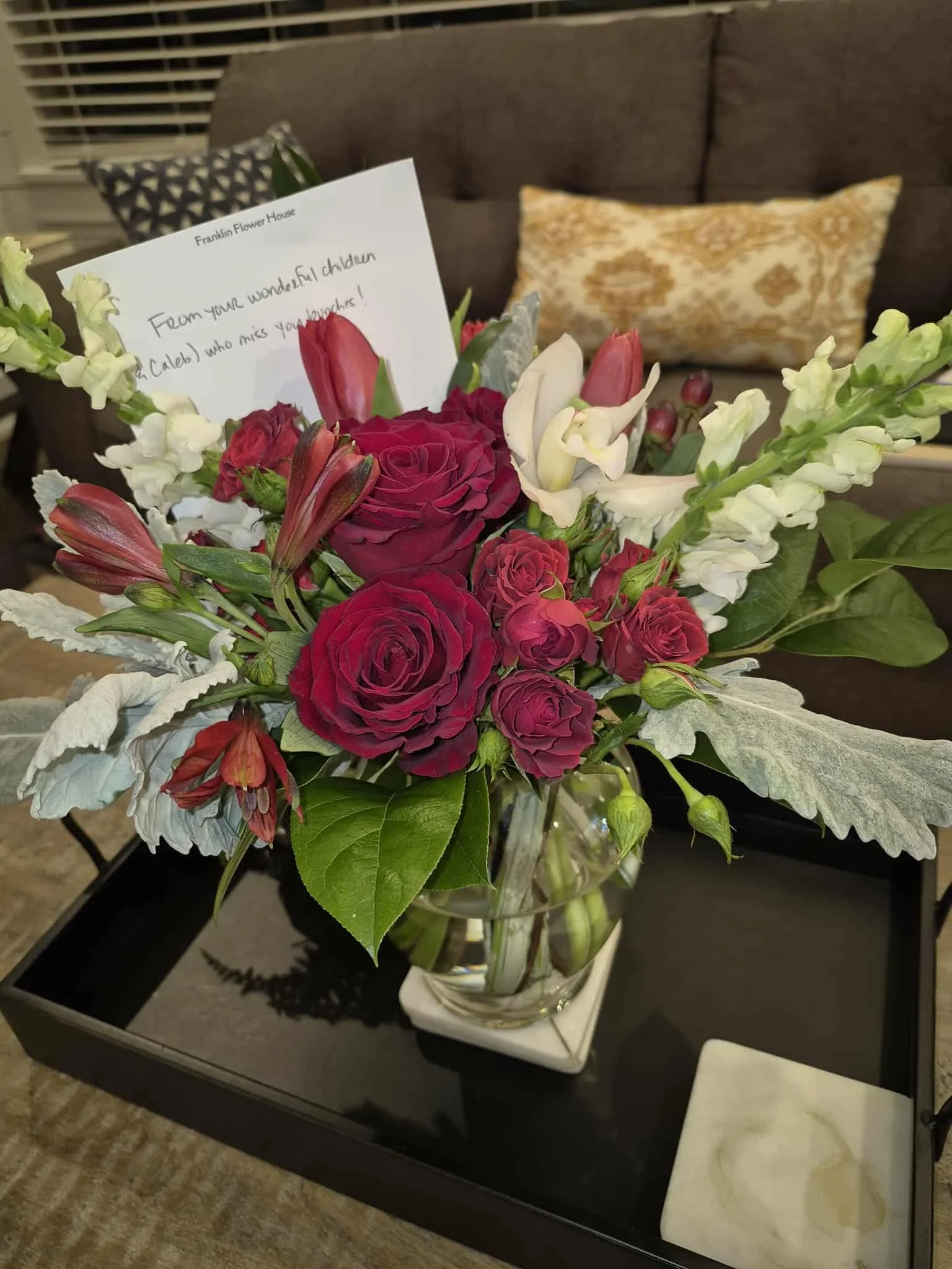 … And today I arrived to my home away from home to receive a beautiful bouquet of flowers from my wonderful children.