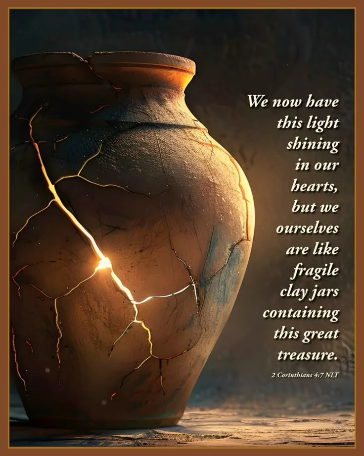 God’s powers shines through the cracks in my clay vessel. His power dwells within me - I find this next verse incredibly powerful. I reflect on it daily and it gives me hope.