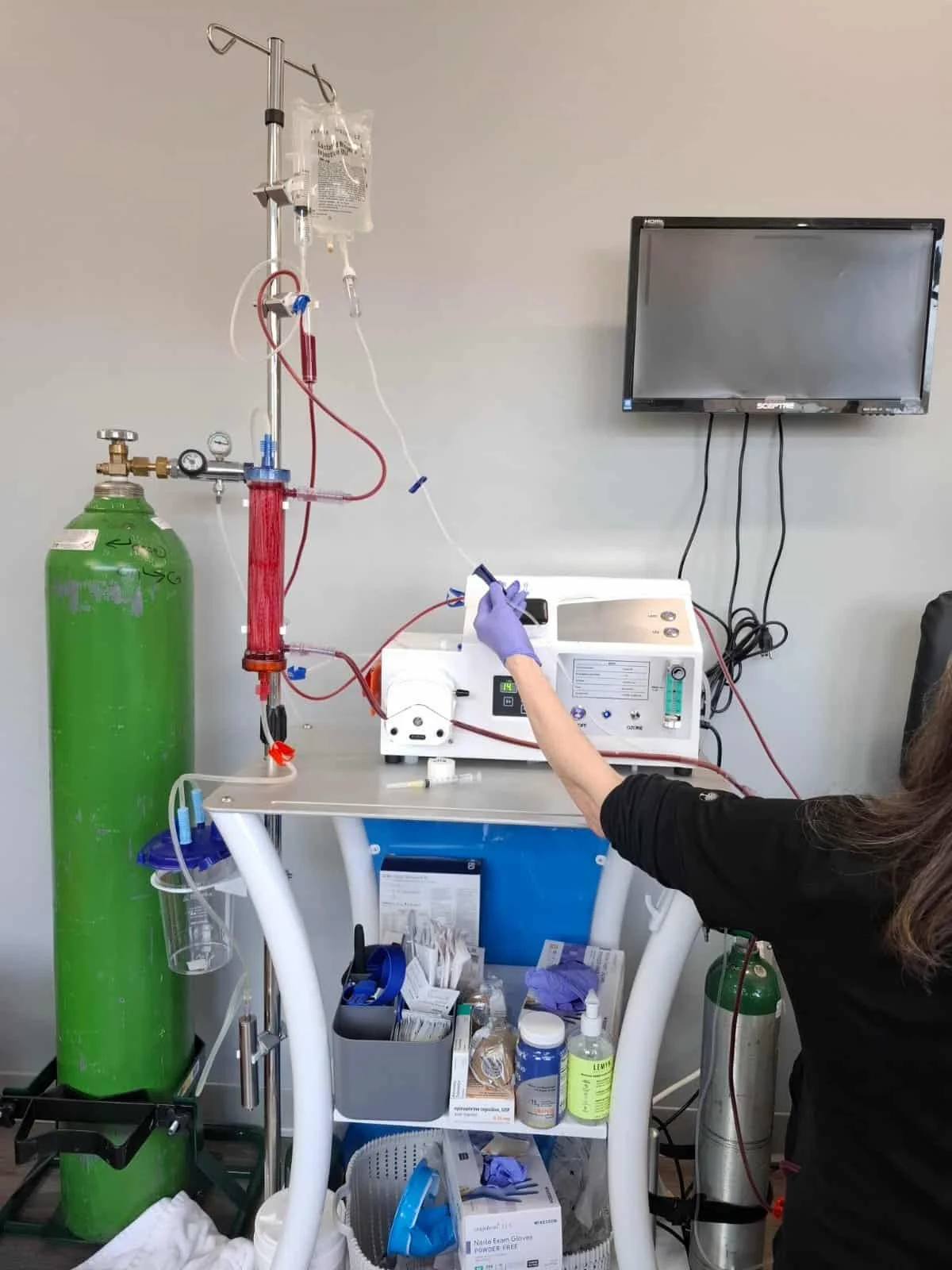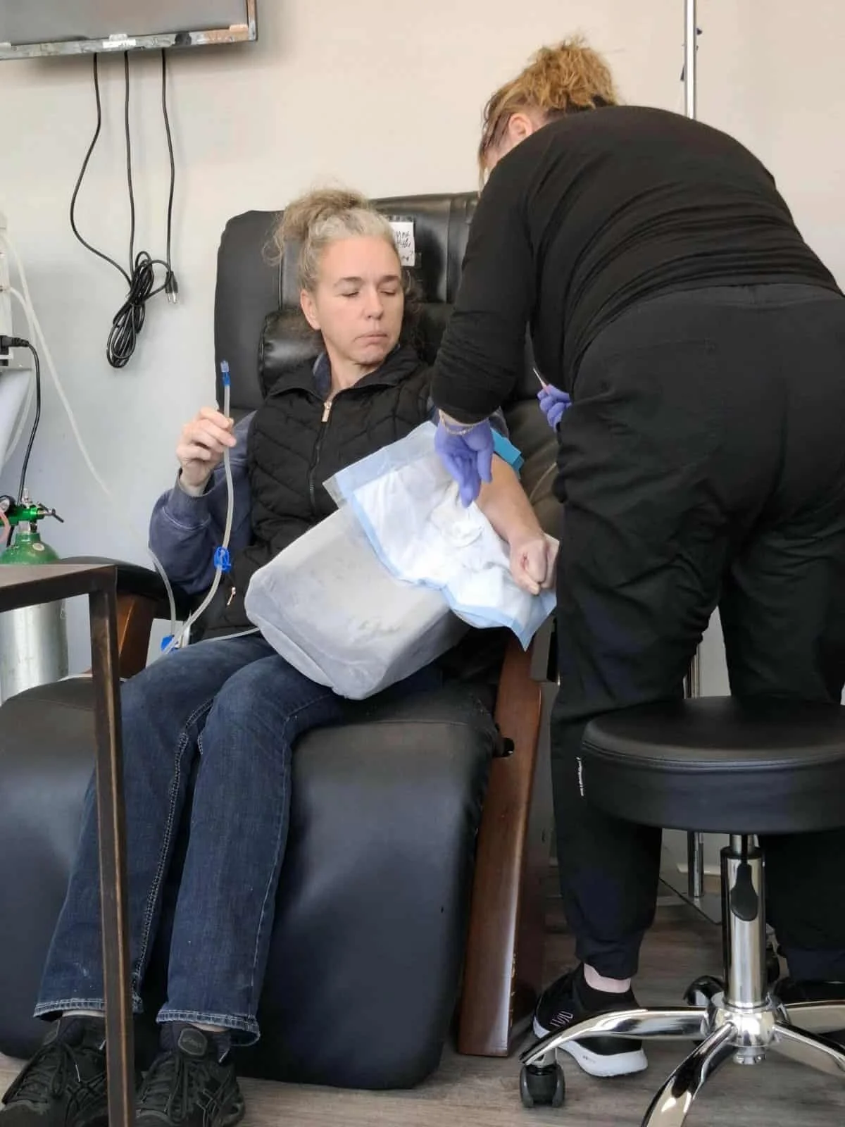 I started the day with another lymph therapy session, this being the first time I did two days in a row, and once again it left me extremely exhausted. The day started with a headache which continued to pull me down as the day progressed. The final EBOO “hurrah” was booked, and in order to get my blood sugars where they needed to be, and because time was too limited to drive to the VRBO for food, we finally had the epiphany to bring an instant pot to the clinic and cook the food I could eat while I was in therapy. All the staff thought the food smelled divine, although they hadn’t been eating it day in and day out for two years (smiley emoji). I’m just glad we found an option to get food prepared and allow the EBOO to proceed. After a sauna I did a quick appointment with the doctor and then went in for the EBOO.